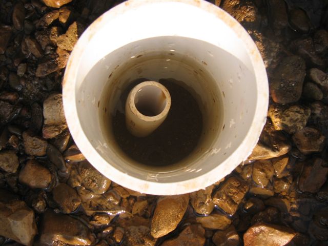 The 1" PVC return pipe is surrounded by a 4" perforated pipe that keeps the gravel from clogging the return pipe. The height of the return pipe is short enough to keep the water from overflowing the edges of the media beds. The return pipe has holes drilled along the side to let the water slowly drain back into the fish tank.