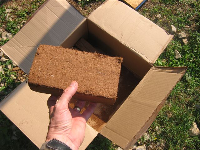This is a brick of cocoa peat that we ordered off the internet. One brick would break apart and expand and cover nearly a third of a media bed.