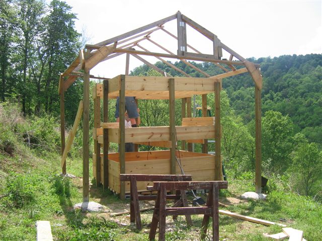 Isaac in 2011 (6 years old) in front of the proposed Aquaponics greenhouse. We took our first moveable chicken coop (which was too heavy to move) and made it into the roof.